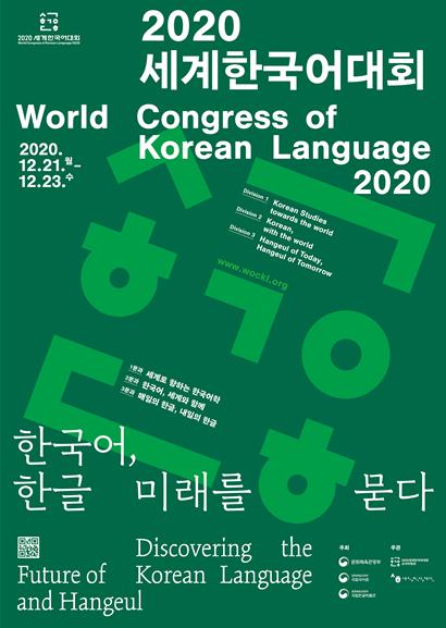 문화체육관광부, 국립국어원(원장 소강춘), 국립한글박물관(관장 심동섭)이 주최하고, 세계한국어대회 조직위원회(공동 조직위원장 박양우 장관, 서울대 장소원 교수)와 세종학당재단(이사장 강현화)이 주관하는 '2020 세계한국어대회'가 12월 21일부터 23일까지 열린다.