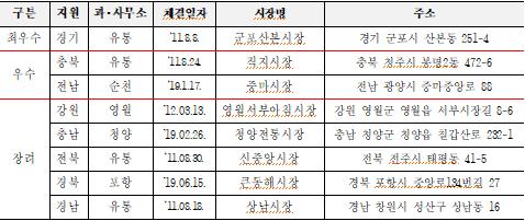 선정결과,「원산지 표시 우수 전통시장」영예의 ▲ 최우수상은 군포산본시장이 차지했고, ▲ 우수상에는 청주직지시장, 광양중마시장 2개소, ▲ 장려상에는 영월서부아침시장, 청양전통시장, 전주신중앙시장, 포항큰동해시장, 창원상남시장 5개소, 총 8개소가 선정되었다.