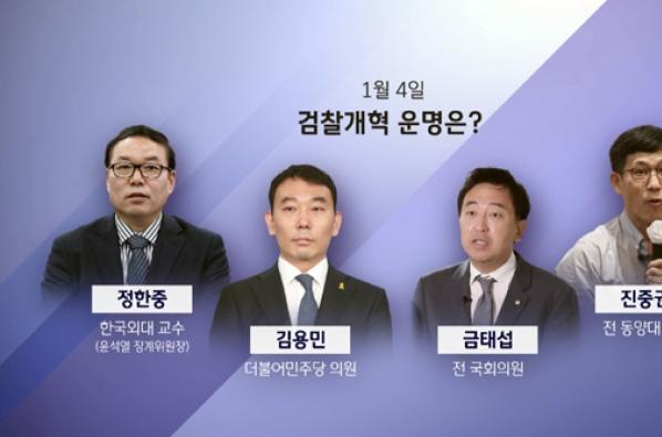 첫날인 1월 4일에는 검찰개혁을 주제로 정한중 한국외대 법학전문대학원장, 김용민 더불어민주당 의원, 금태섭 전 의원, 진중권 전 동양대 교수가 출연한다. 출연자 모두가 검찰개혁 이슈에서 큰 관심을 받고 있는 인사들이어서 토론은 어느 때보다 활발히 이뤄질 것으로 보인다.