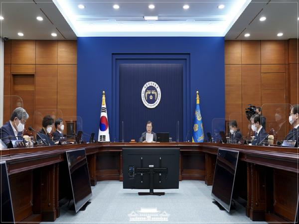 오늘 국무회의에서는 '지방자치법 전부개정법률 공포안' 등 법률공포안, '협동조합 기본법 일부개정법률안' 등 법률안, '4차산업혁명위원회의 설치 및 운영에 관한 규정 일부개정령안' 등 대통령령안, '2021년도 일반회계 목적예비비 지출안' 등 일반안건을 심의·의결했다.