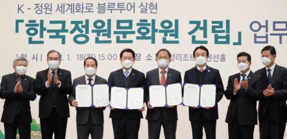 산림청는 18일 담양리조트에서 전라남도, 담양군, 한국수목원관리원과 ‘한국정원문화원 건립·운영 공동추진에 관한 업무협약’을 체결했다.