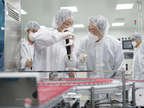 이에 문재인 대통령은 수치가 높을 수록 좋은 것인지 물었고, 박 실장은 "700억 개 이상으로 기준을 잡고, 1cc당 1,000억 개를 타겟으로 해 일정하게 생산되고 있다"고 설명했다.