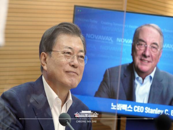 문재인 대통령은 20일 노바백스사의 스탠리 에르크(Stanley C. Erck) 대표이사와 영상 회의를 진행하고, 노바백스사가 개발 중인 백신의 기술 이전(기술 라이선스인) 및 추가 생산을 포함한 국내 공급 방식에 대해 논의했다.