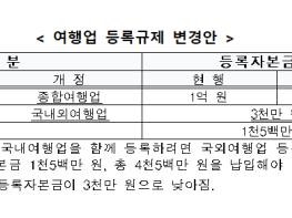 여행업 등록 자본금 기준 완화, 소규모 창업 촉진