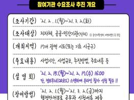 이번 수요조사는 지자체, 공공기관, 민간기관(단체) 등 실패박람회 참여를 희망하는 지자체와 기관을 대상으로 2월 1일부터 3월 2일까지 진행되며, 유형에 따라 지역박람회 또는 자율기획프로그램을 신청할 수 있다.