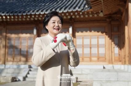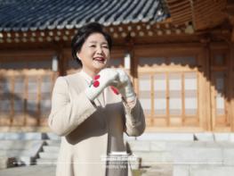 김정숙 여사는 1일 사회복지공동모금회가 진행한 ‘희망2021나눔캠페인’ 사랑의 온도탑 100도 달성을 이뤄낸 국민들에 대한 감사 인사를 영상으로 전했다. 김정숙 여사는 故 이희호 여사, 권양숙 여사, 김윤옥 여사에 이어 현재 사회복지공동모금회 명예회장으로 활동하고 있다.