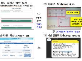 그러나, 모바일 앱 철도 승차권 예약 후 TMO에 방문하여 승차권을 수령해야 했다.