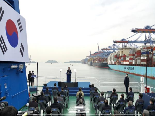 문재인 대통령은 가덕도 인근해상 선상에서 신공항 예정지를 둘러보며 관련 보고를 받은 뒤 다음과 같이 당부와 지시를 했다.