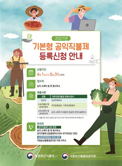 농림축산식품부는 2021년 기본형 공익직접지불금 신청을 4월1일부터 5월31일까지 접수한다.