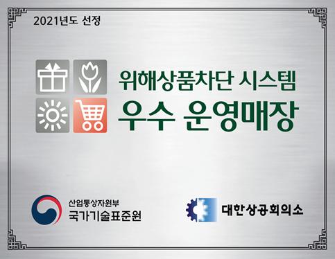 국표원은 최근 3년간 위해제품 신속 차단 실적, 운영매장 수 등을 종합 평가하여 (최)우수 유통업체를 선정하였으며, 선정증과 함께 소비자들이 우수 운영매장을 쉽게 알아볼 수 있도록 현판도 수여하였다.