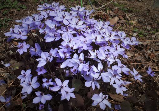 산림청 국립수목원 전시원이 이른 봄에 꽃이 피는 다양한 초본식물들로 인해 보랏빛으로 물들고 있다.