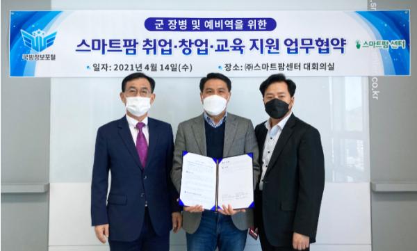 4월 14일 국방정보포털(대표 문병호)과 ㈜스마트팜센터(대표 조만호)가 ‘군 장병 및 예비역을 위한 스마트팜 취업·창업·교육 지원 업무협약’을 체결했다.