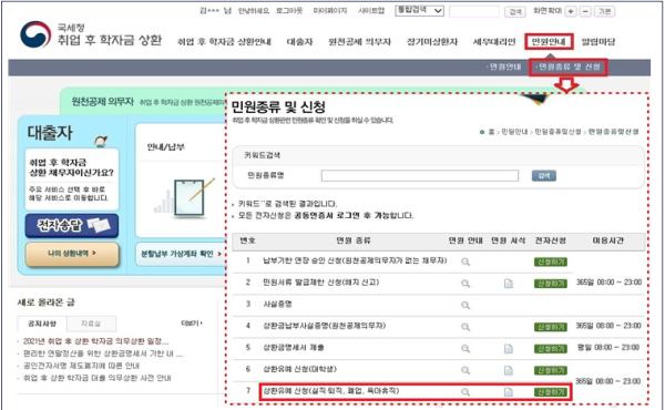 국세청은 경제적 어려움을 겪고 있는 대출자가 신청하는 경우 의무상환액의 납부를 2년간 유예하고 있다.