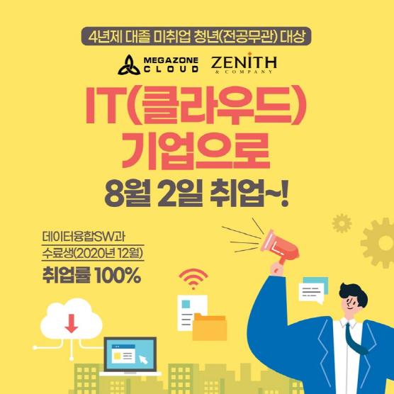 하이테크과정(대졸 취업희망자 대상 고급 기술 교육과정)을 운영하는 분당융합기술교육원은 4월 27일 클라우드 서비스 기업인 메가존클라우드, 제니스앤컴퍼니(주)와 클라우드 전문가 육성을 위한 산학 파트너십(MOU)을 체결하고 오는 10일까지 정보기술(IT) 개발자를 희망하는 소수정예 교육생 22명을 모집한다.