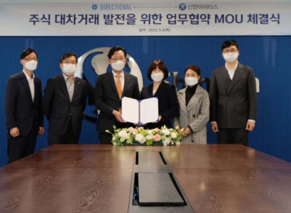 신한아이타스(사장 최병화)가 지난 5월 4일 디렉셔널(대표 이윤정)과 여의도 신한아이타스 본사에서 ‘주식 대차거래 상호 발전을 위한 업무협약식(MOU)’을 체결 했다고 6일 밝혔다.