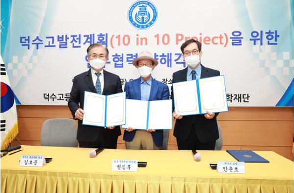 덕수고등학교는 5월 7일 오전 11시 덕수고총동창회 및 (재)덕수장학재단와 이러한 내용의 「덕수고 발전계획(10 in 10 Project)」을 위한 업무협약을 체결하였다.