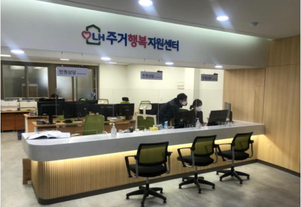 「주거 행복지원센터」는 LH가 운영하는 임대주택단지 관리사무소로, 지난해 네이밍 공모를 통해 임대주택 입주민의 ‘종합 주거서비스 제공 및 공동체의 행복 지원’이라는 의미를 담아 관리사무소 명칭을 「주거 행복지원센터」(이하 행복지원센터)로 바꾸고, 노후 사무공간 리모델링도 실시했다.