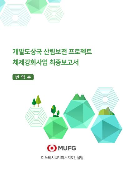 산림청은 14일 이에스지(ESG) 경영 차원에서 해외 온실가스 감축사업(REDD ) 추진을 계획하고 있는 기업을 지원하기 위해 일본 미쓰비시유에프제이(UFJ)리서치·컨설팅이 지난해 제작한 ‘개발도상국 산림보전 과제(프로젝트) 체제강화사업 최종보고서’를 국문화하여 공유한다.