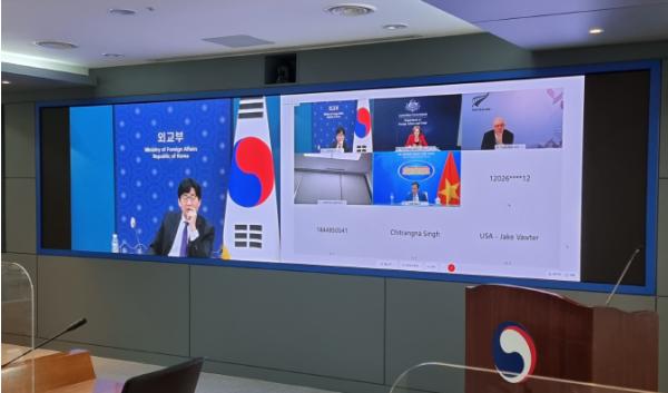 최종문 차관은 5.14. 10:30-11:15 간 미국, 일본, 인도, 호주, 뉴질랜드, 베트남과 외교차관 화상협의를 갖고, 코로나19 상황 하 △경제 재개 문제, △국제여행 촉진, △백신/치료제, △코로나19 상황의 역내 전략적 함의 등을 주제로 의견을 교환하였다.