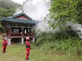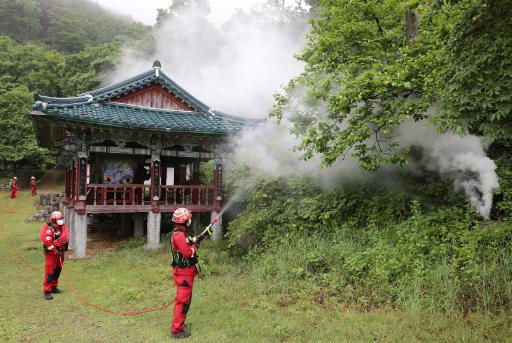 이번 훈련은 가상의 산불상황을 부여하여 기계화 산불진화 시스템을 활용한 민관 합동훈련으로 이루어졌으며 훈련 종료 후 목조 문화재 보호를 위한 이격공간 조성사업을 진행하였다.