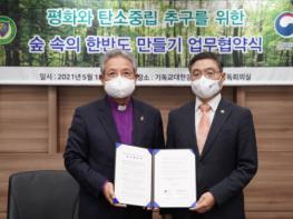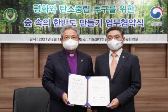 산림청은 기독교대한감리회(감독회장 이철)와 18일 평화와 탄소중립 실현을 위한 숲속의 한반도 만들기 업무협약을 체결하였다.