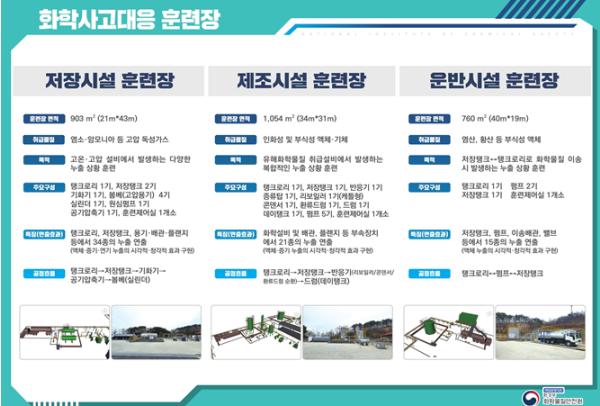 화학물질안전원은 이번 훈련 과정에서 사고발생 누출지점 봉쇄와 2차 사고 확대 방지를 위한 확산차단, 인근 주민대피 여부 판단, 수계확산 시 조치 등을 지침(매뉴얼)에 따라 종합적으로 살펴볼 예정이다.