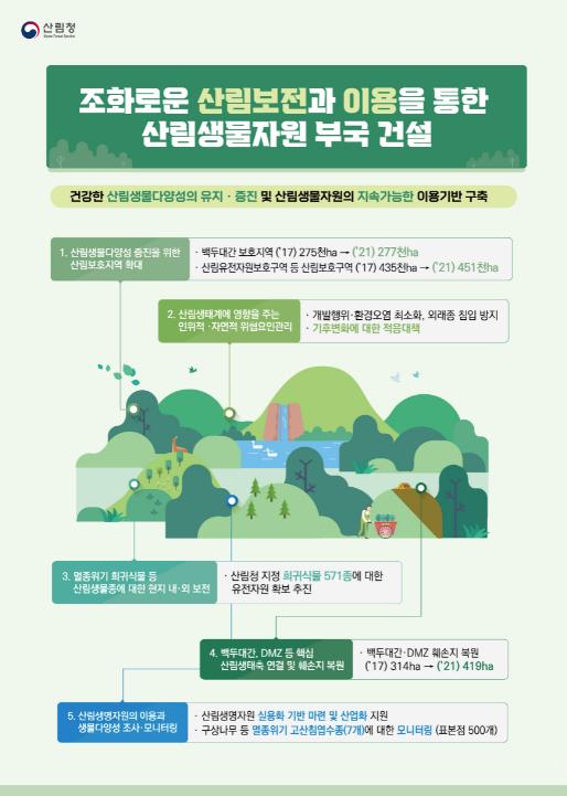 산림은 자생식물 6천종, 곤충 1만2천종, 버섯류 2천종 등의 생물종이 서식하는 생물다양성의 보고이며, 우리 삶의 터전이다. 이에 산림청은 2008년부터 「산림생물다양성 기본계획」을 수립하여 산림생물의 보호·보전 정책을 추진하고 있다.