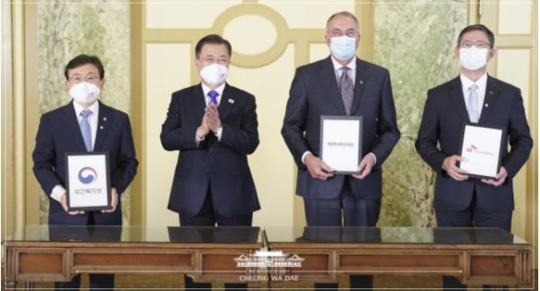 스탠리 어크 노바백스 대표이사는 지난 4월 문 대통령의 초청으로 청와대를 방문한 것을 거론하며 "문 대통령께서는 저희와의 협력 관계를 앞으로도 더욱 확대 및 강화해 나가기를 촉구해 주셨다"며 "2022년, 2023년에도 백신 공급을 위해서 계속해서 공동의 노력을 기할 것"이라고 약속했다.