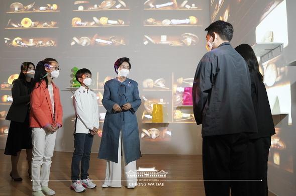 김정숙 여사는 전시를 마치고 함께 전시를 관람한 어린이들에게 기후환경과 녹색미래가 여기 있는 미래세대에게 더욱 중요한 가치이기에 함께 해서 더욱 뜻깊다고 했다.