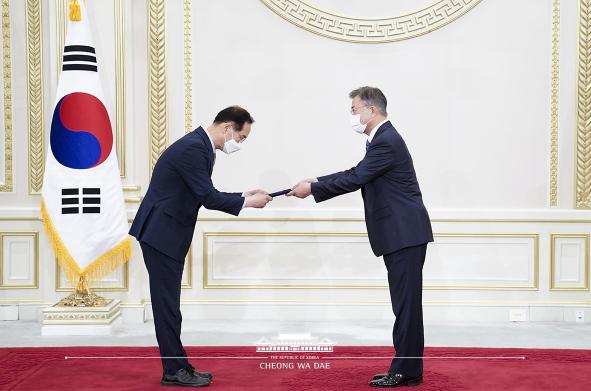 문재인 대통령은 1일 오후 13명의 신임 대사에 신임장을 수여했다.