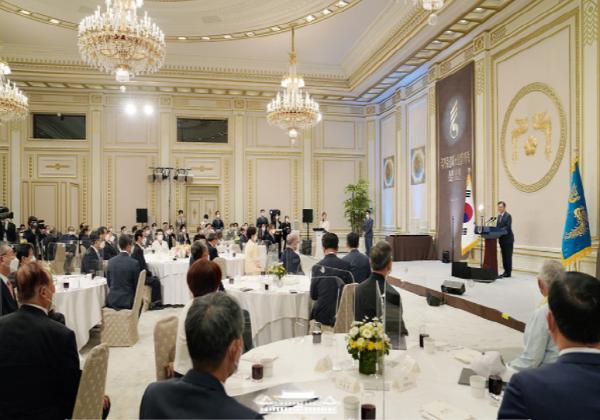 문재인 대통령은 24일 청와대 영빈관에서 국가유공자 및 보훈가족 초청 오찬 행사를 가졌다. 오늘 행사는 코로나19 확산 이후 처음으로 청와대 초청으로 개최하는 오찬으로, 국가유공자와 보훈가족을 최고의 예우로 모심으로써, 국가유공자와 보훈가족의 자긍심을 고취하고, 나라를 위해 희생하고 헌신하신 분들에게 존경과 감사의 마음을 전달하기 위해 마련됐다.